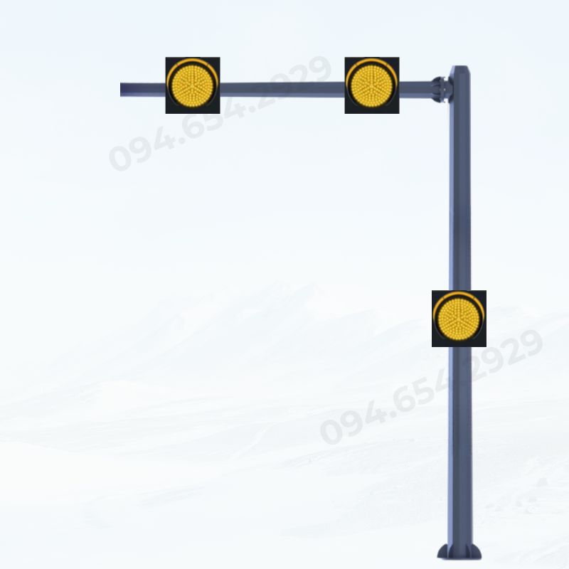 - Tay vươn được gắn ngang trên cột để lắp 02 bóng đèn cảnh báo, giúp mở rộng phạm vi quan sát của người tham gia giao thông.
